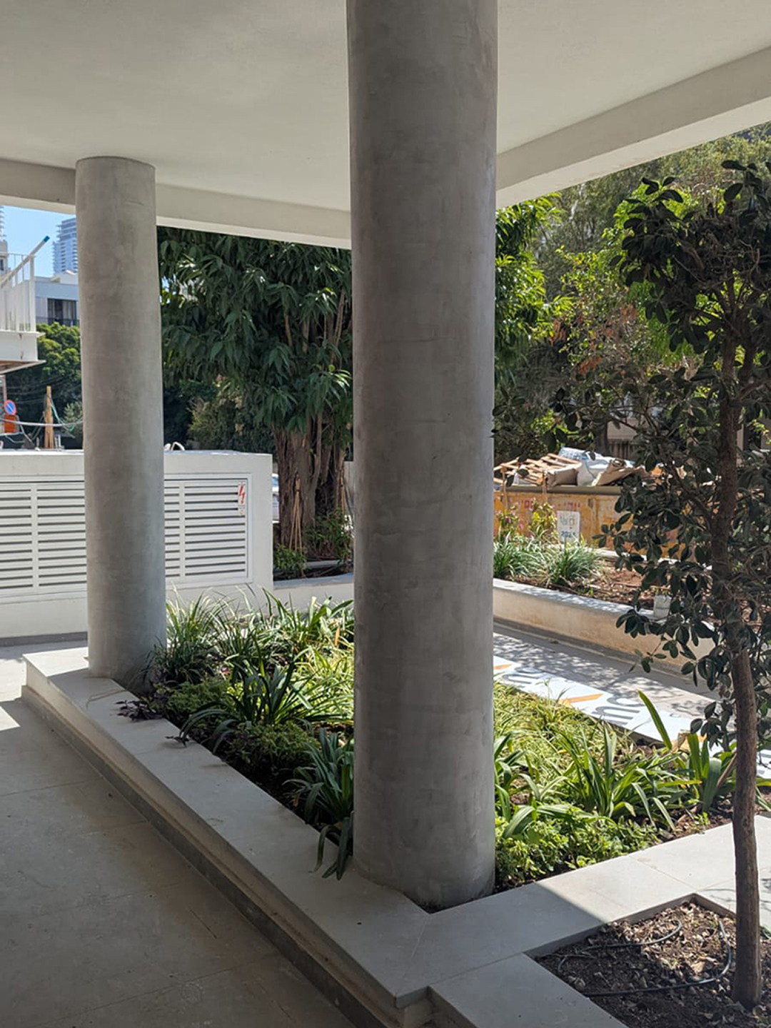 אדניות בטון על גבי תקרת חניון לגינות תמ״א, רחוב בן סרוק, 2025