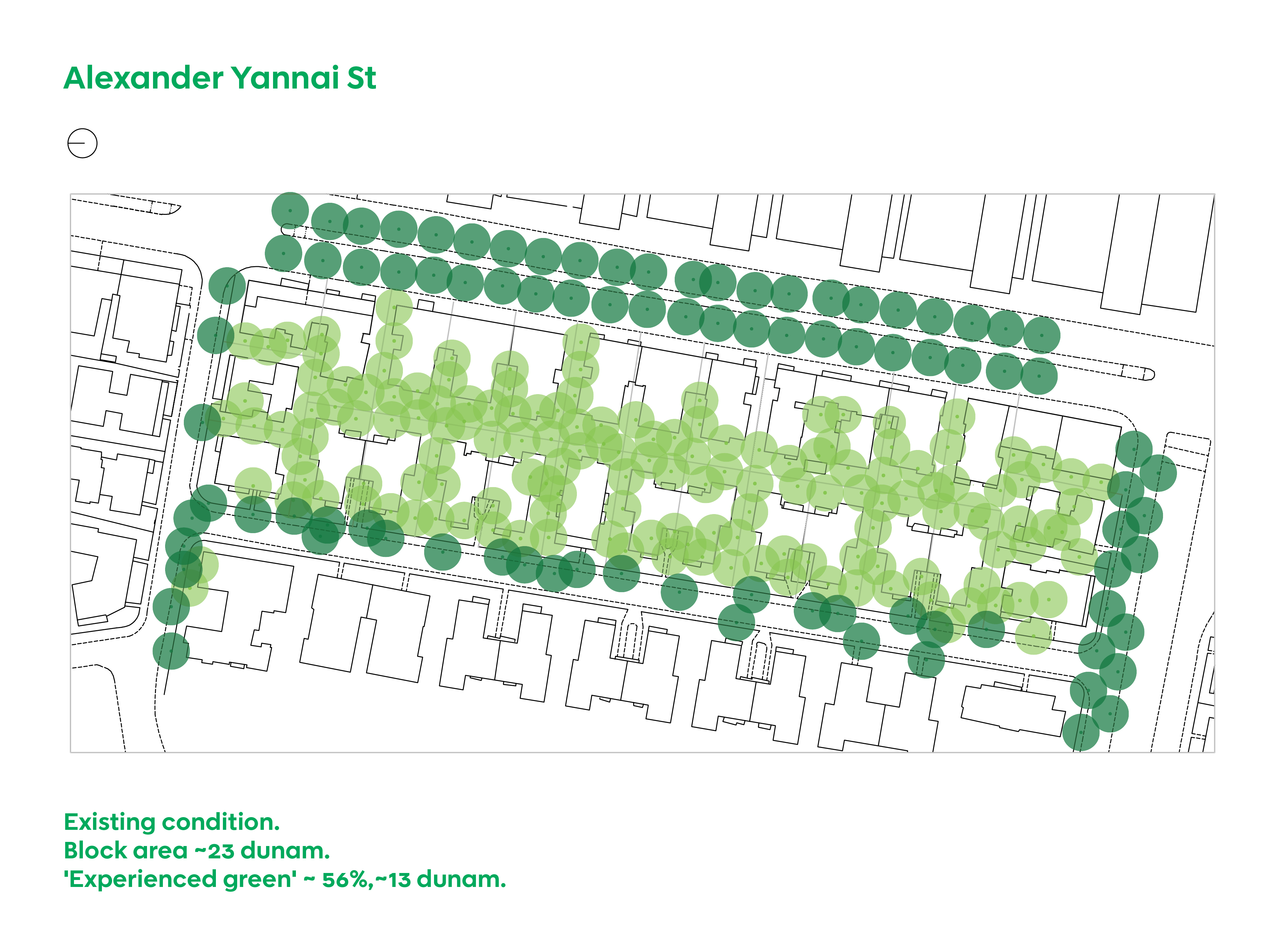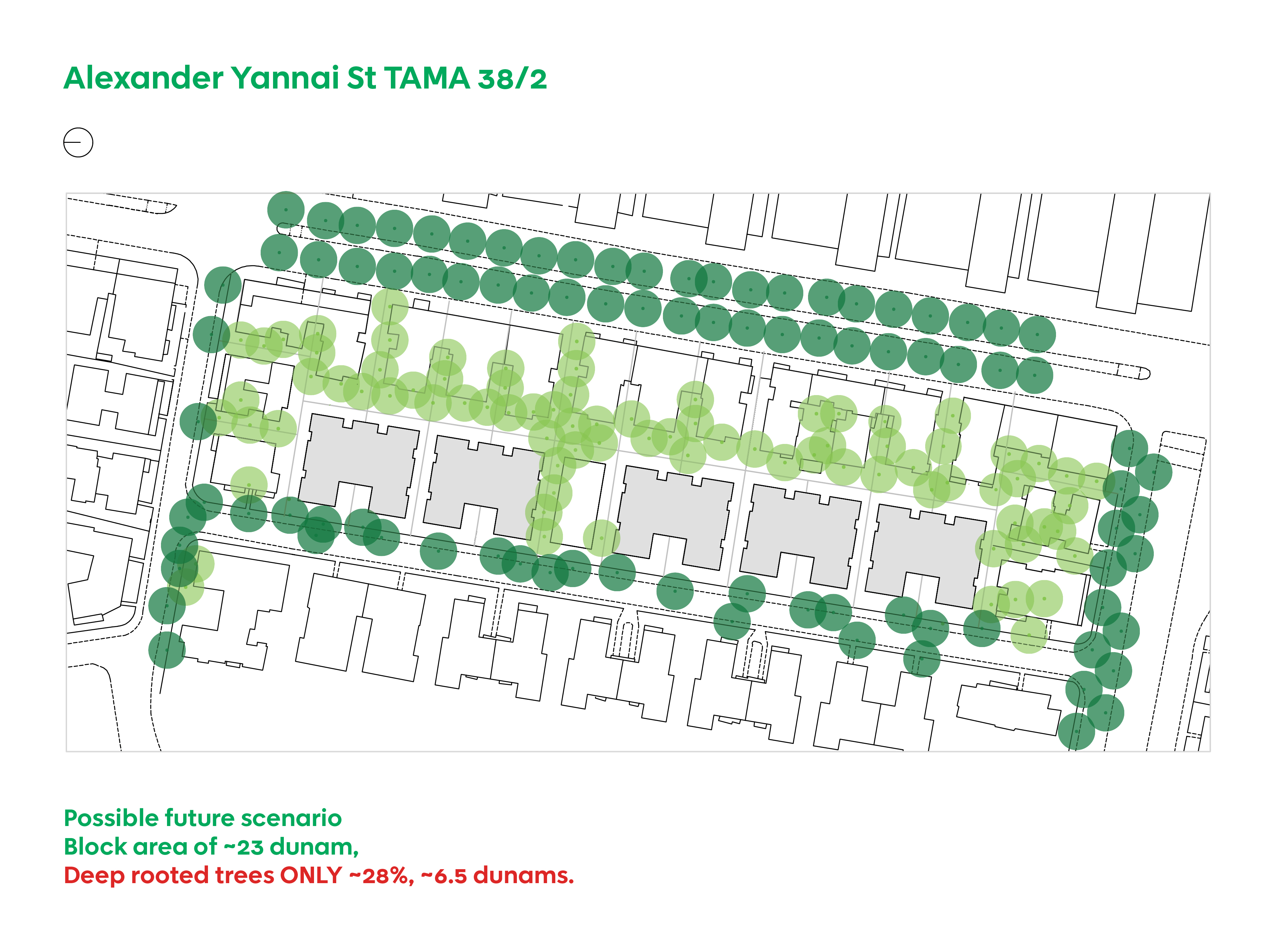 The map illustrates the cumulative impact on the city’s Civic Green fabric. These consequences are typically assessed on a per-permit basis rather than as the aggregate, citywide effect of TAMA 38/2 projects.